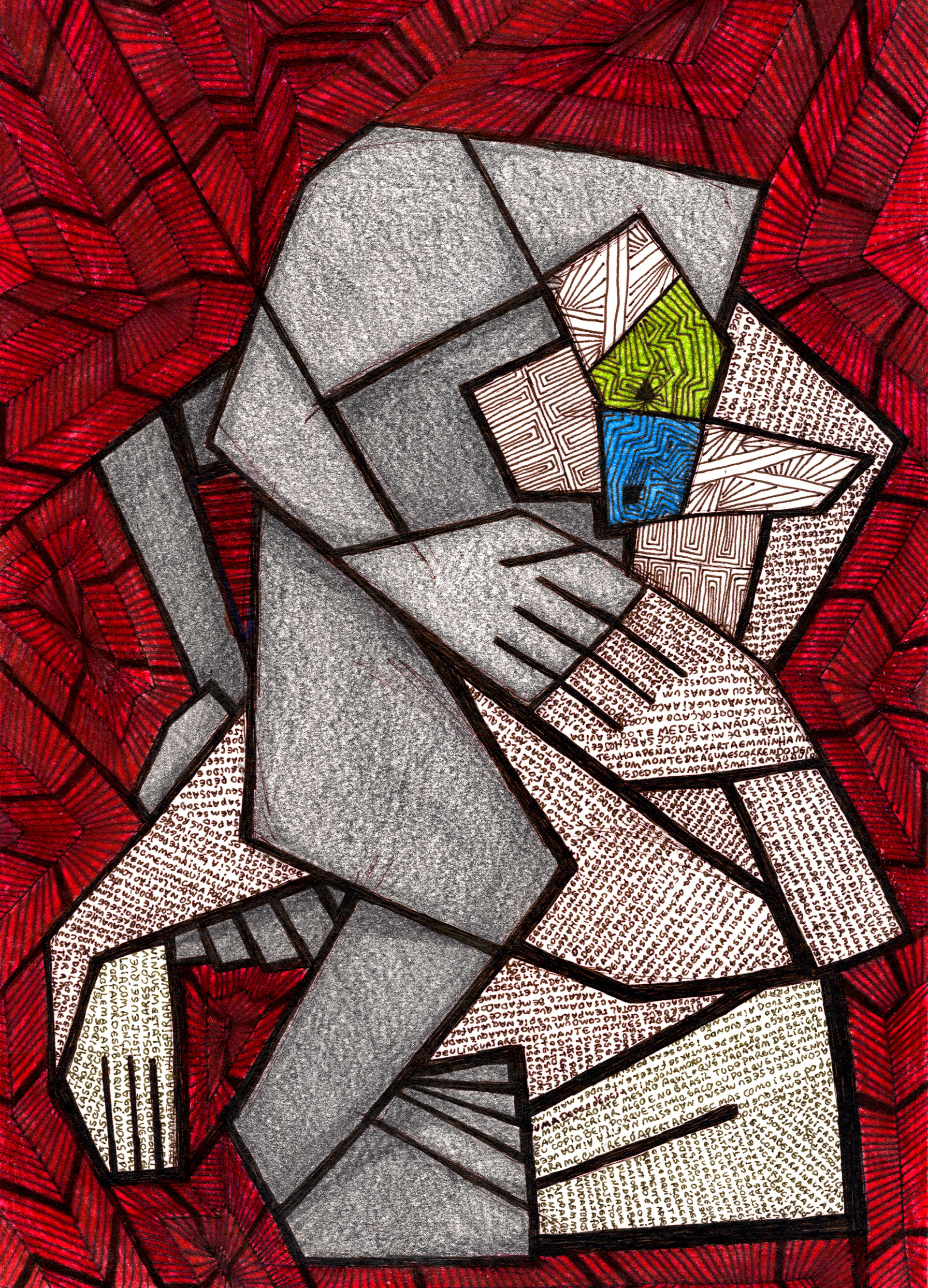 Construindo. Caneta nanquim e lápis de cor sobre papel, 21 x 29,7 cm. São Paulo, Brasil, janeiro de 2004.