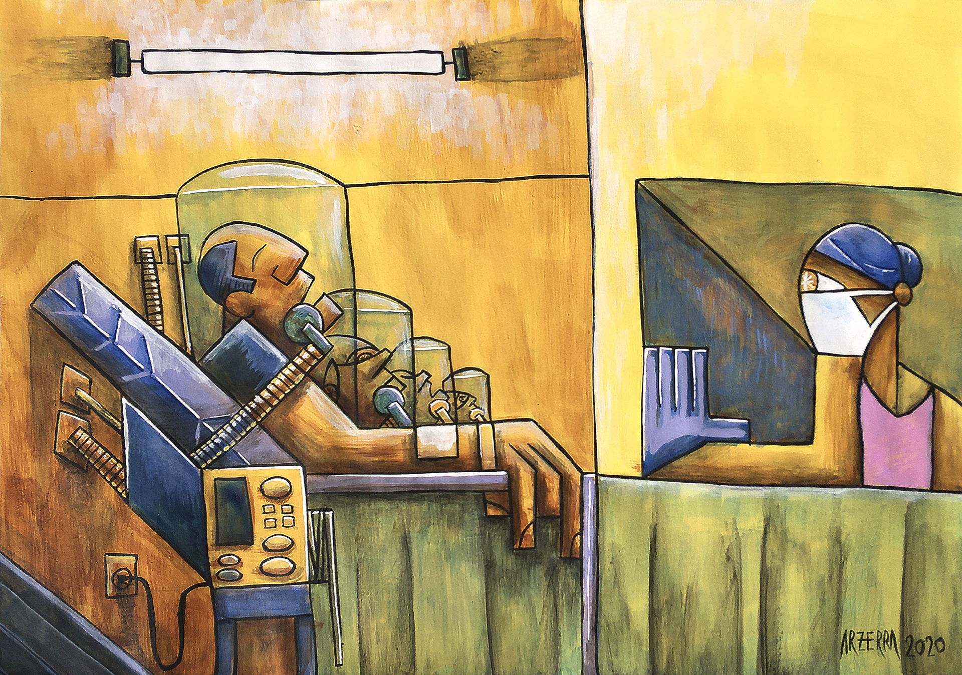 Fleumáticos. Tinta acrílica sobre papel, 42 x 29,7cm. Santos, Brasil, 30 de março de 2020.
