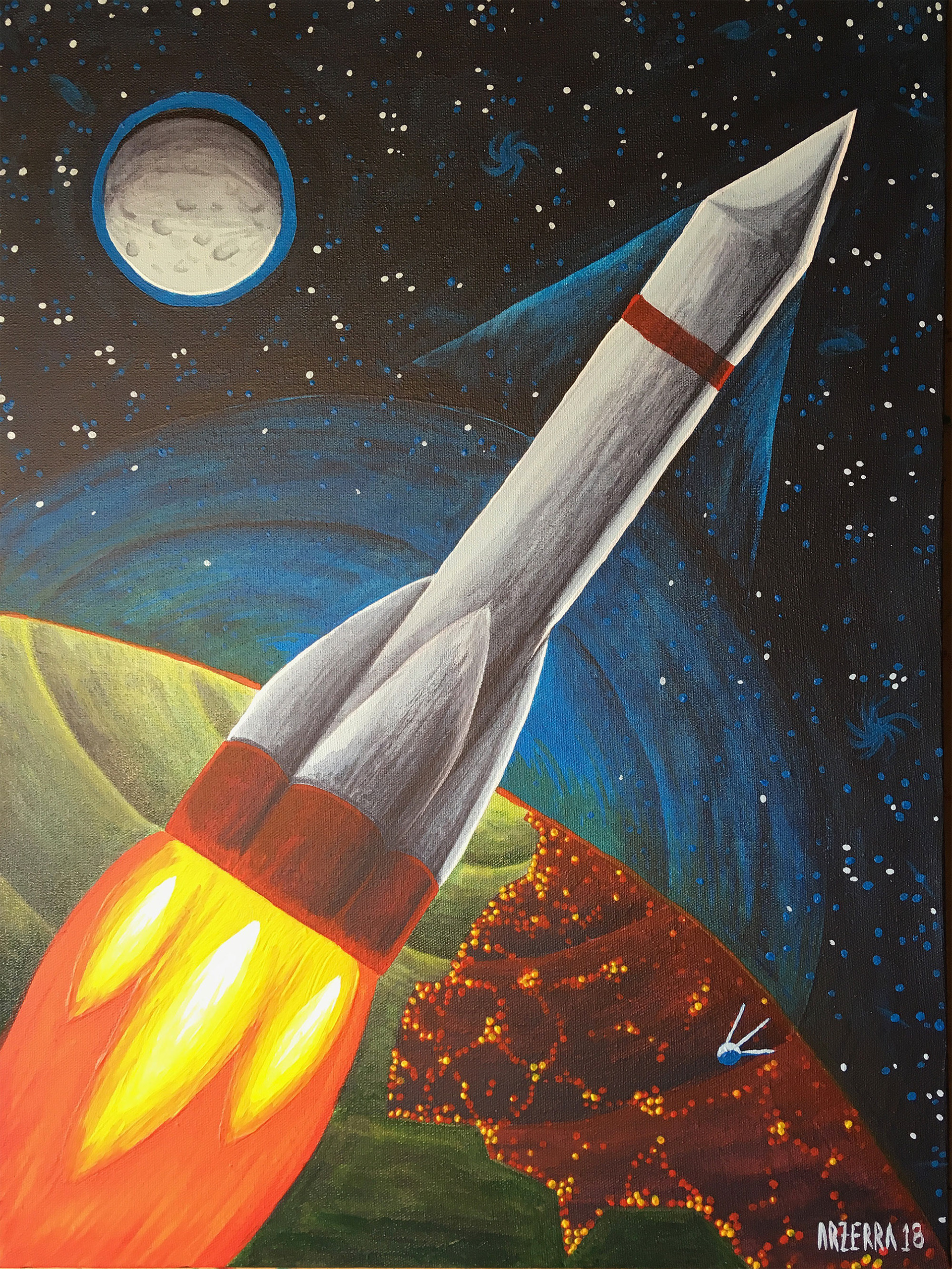 "Foguete", 30 x 40cm. Santos, Brasil. Tinta acrílica sobre tela. Novembro de 2018.